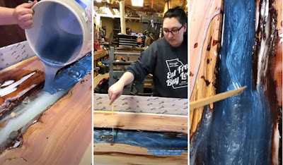 Kyle and Allison with a little help from Grandpa Buddy and use of the shop and tools, designed and created this beautiful table of cedar and resin for their new house! Carrying on the tradition of 'sawdust in the veins' in this family of carpenters and builders. Great job everyone!