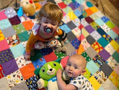 granma Lissa's I-spy quilt with Lili and Mav :)
